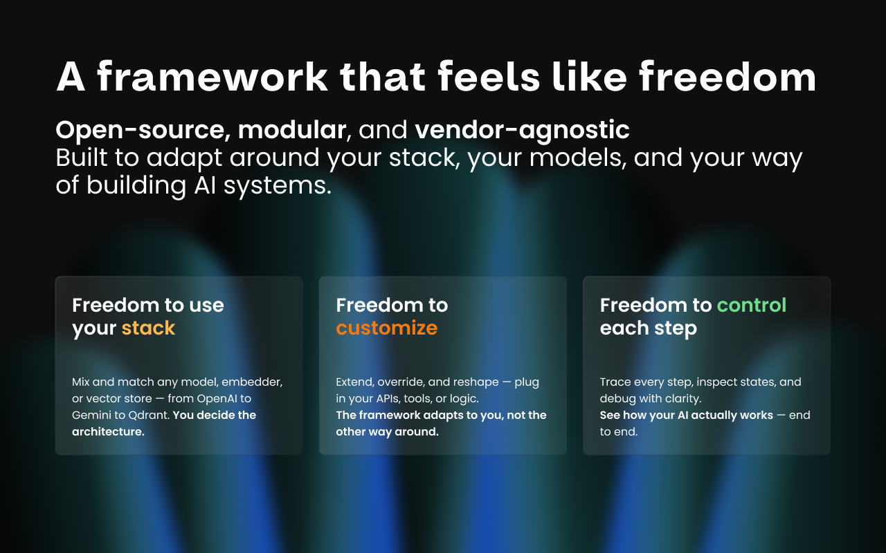 The framework is designed to provide full control, speed, and modularity for building RAG and AI Agent solutions, tackling common issues in GenAI development.