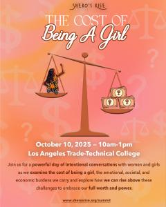 Shero’s Rise hosts its annual summit Oct. 10 in LA to empower girls through art, leadership talks, and community, themed “The Cost of Being a Girl.”