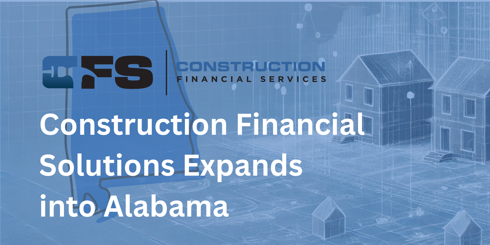 CFS logol Construction Financial Solutions over a blueprint background with Alabama state outline