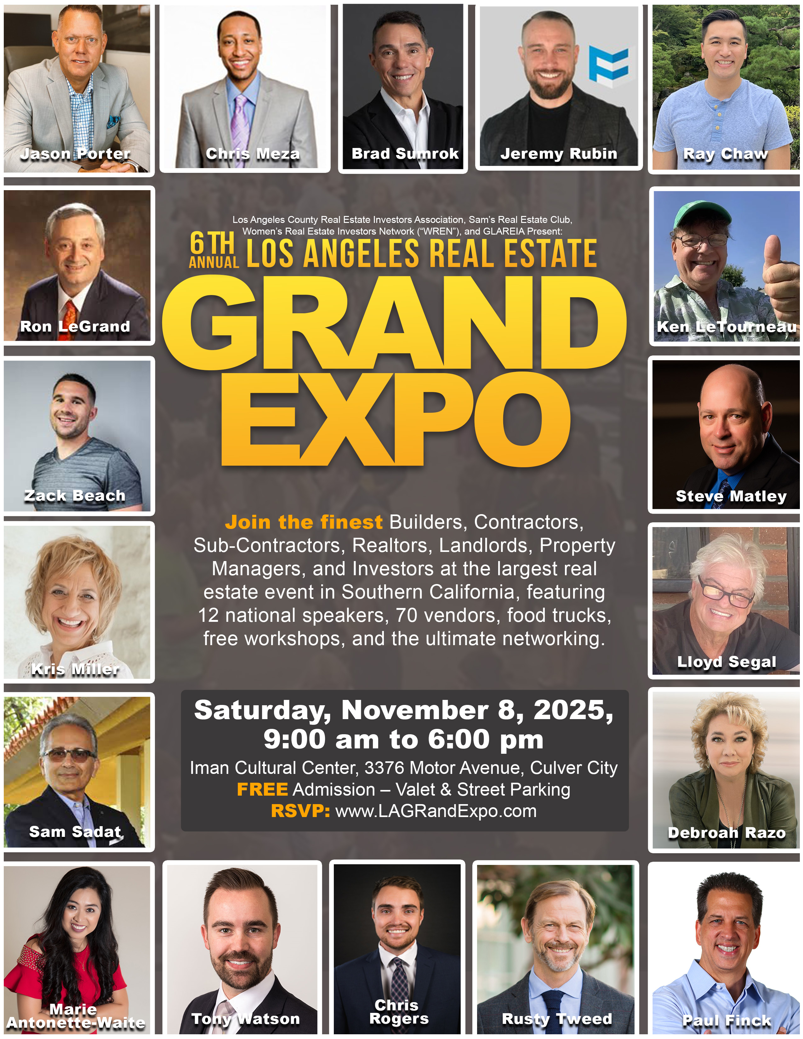 The Grand Expo is co-produced by the Los Angeles County Real Estate Investors Association, Sam’s Real Estate Club, and Women’s Real Estate Network.