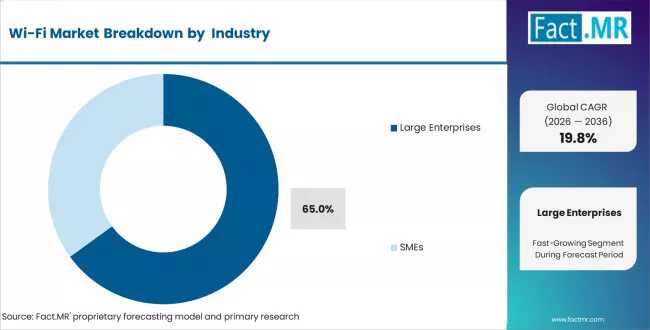 Enterprise-Grade Dominance: Large enterprises currently hold a 65% market share, prioritizing secure, scalable Wi-Fi solutions to manage cloud-based operations and IoT integration.
